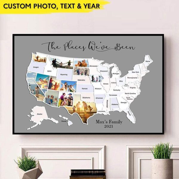 Personalized USA Photo Map Canvas, 50 States Travel M – Pakora